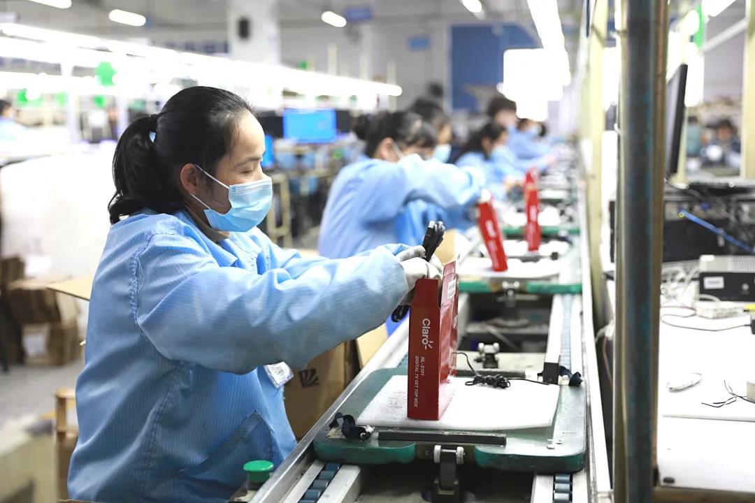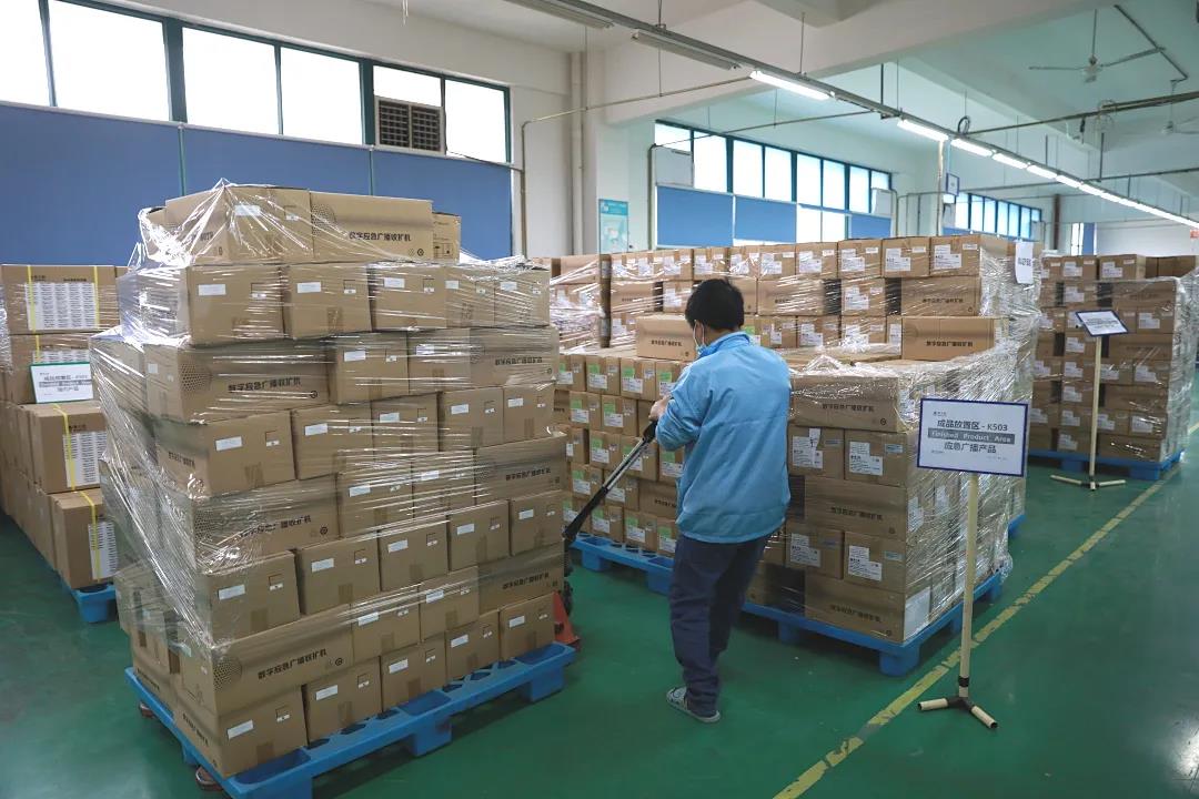 ? ? ? 在生產線可以看到,工人們正在加緊完成銷往海外的機頂盒訂單、應急廣播系統設備的生產,以及人臉核驗終端及測溫掃碼產品的組裝。