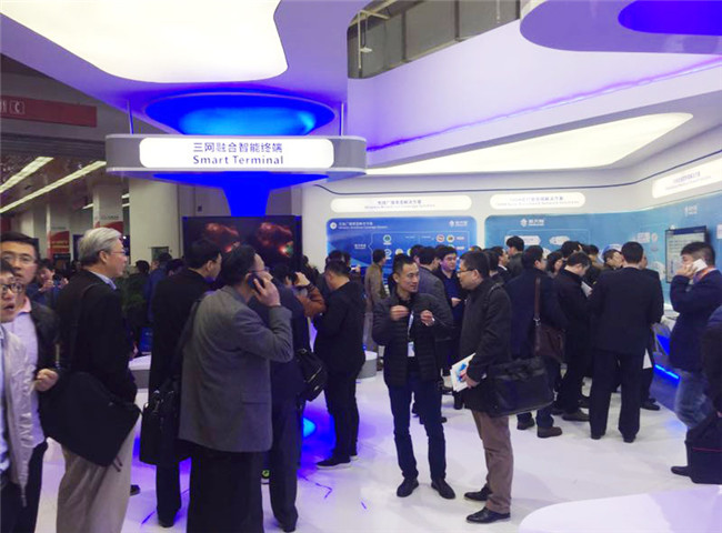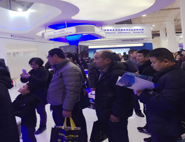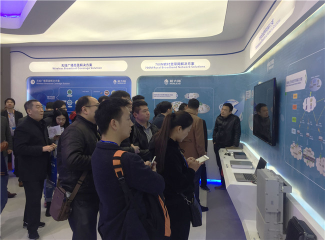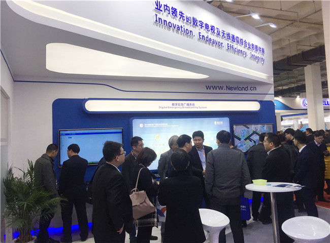 本屆展會我司加強應用發光材質以突顯極具視覺沖擊力及科技感的展臺外形,一開展就吸引了大量觀眾駐足,成為本屆CCBN不可忽視的亮點。在外觀上花巧思的同時,新大陸通信展臺還精心規劃了五大展區,分別為三網融合智能終端區、數字應急廣播系統區、700M無線廣播寬帶網解決方案區、無線廣播覆蓋解決方案區以及海外終端產品區。除在三網融合終端展區,推出的最新VR、高端游戲等融合型終端吸引了眾多觀眾和行業客戶體驗外,更為突出的是我司自主研發的擁有多種組網方式的數字應急廣播系統展區及應用于新一代廣播電視數據網的700M無線寬帶網解決方案展區,這些緊密圍繞2017年廣電發展重點的主推展品,吸引了大量客戶及廣電運營商的參觀咨詢。